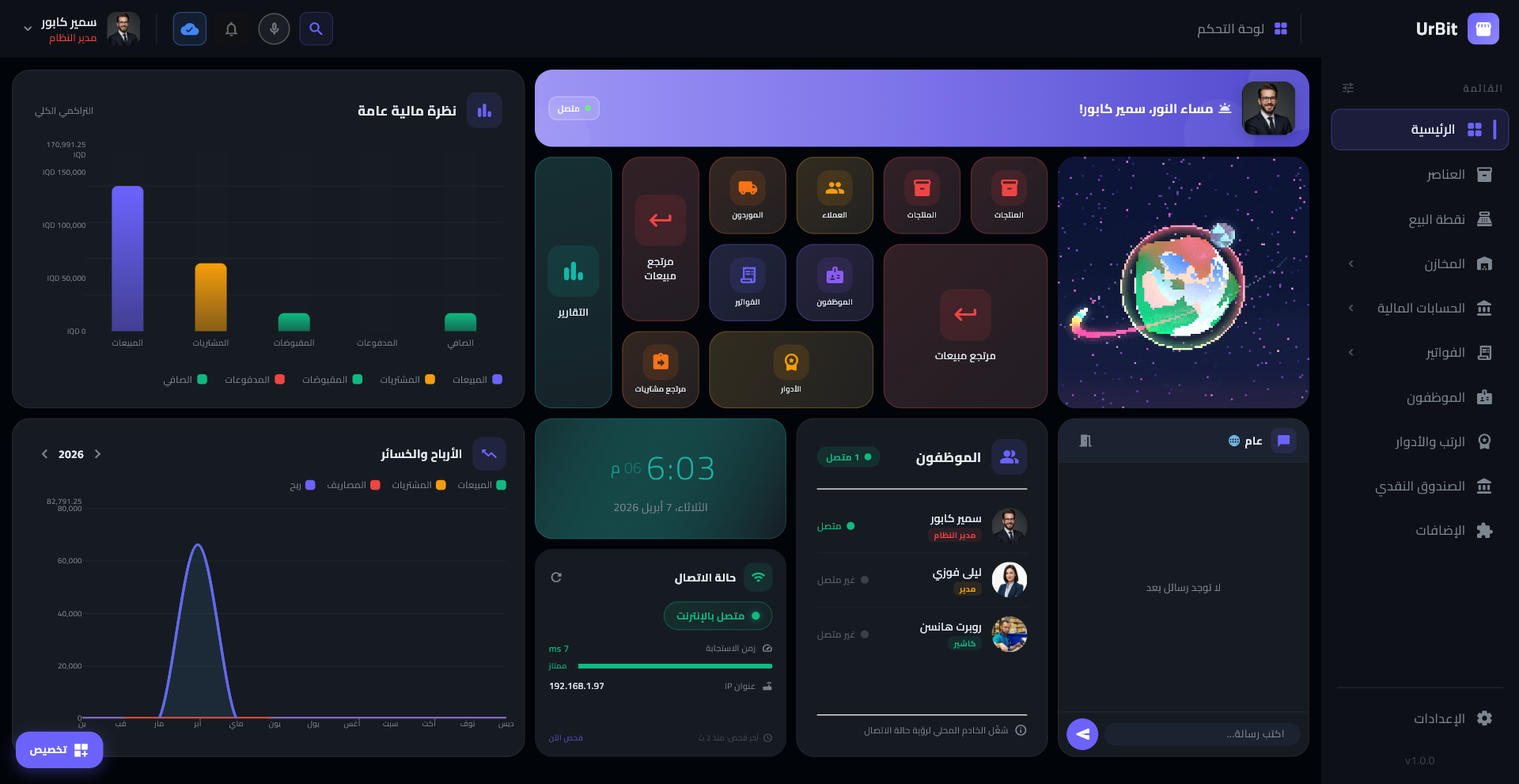الجيل القادم من أنظمة الـ ERP و POS. صُمص خصيصاً ليكون الأسرع في الأداء والأقوى في حماية البيانات، مع تشفير عالي الأمان يربط بياناتك بجهازك فقط عبر UrBit.